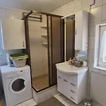 הדירה כוללת גם מטבח מצויד ו1 חדרי אמבטיה. הדירה Ferienhaus Kranach 76 סופרת 1 חדרי שינה. חדר האמבטיה ממולא בשירותים נפרדים ומקלחת.